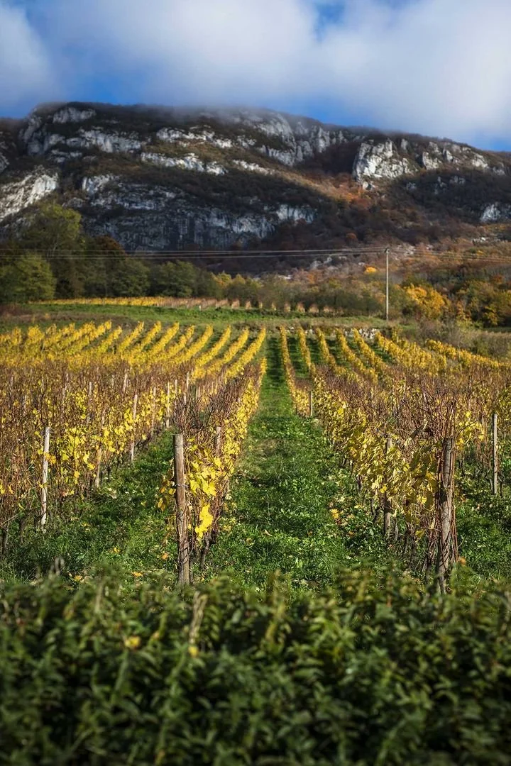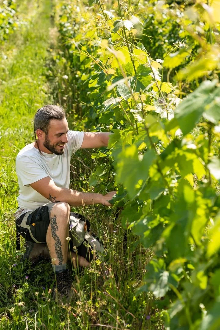 “Corentin Houillon’s first wine memories date back to 1991, when he was foot treading the Poulsard grapes from the legendary Pierre Overnoy. Having the chance to be fully immersed in such a family from a young age is of course a huge asset. Those experiences were a decisive influence in his decision to become a winemaker, and he went on to study wine in Beaune and Montpellier. Corentin subsequently worked with some stellar estates that are at the forefront of Biodynamic farming in France, such as Domaine Tissot in Jura and Domnique Derain in Burgundy. He then travelled to the New World to broaden his experiences, and finally began making wine in Switzerland under his name for La Ville de Morges, where we first tasted his craft. We were really happy to hear back that Corentin has found this real gem in the Chautagne region, literally a 5 min drive from Marie and Florian Curtet. He is now looking after 5ha of steep vineyards (Altesse, Jacquère, Pinot, Gamay & Mondeuse) that comes as one single block, all planted on "molasses soils" surrounded by forest. The vineyard has no neighbours at all, just their cellar at the bottom of the hill. Corentin works mainly with concrete tanks and barrels, giving the wines time and oxygen. Talking to him is quite invigorating as he has quite a lot of energy, and he laughs a lot too. He knows exactly what he wants to do, and has invested a lot in state of the art equipment to work the soil in his particular conditions, and in some instances, has built his own bespoke tools that are better suited.”